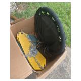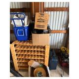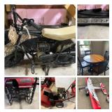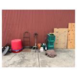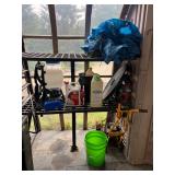 Flower pots, bench, yard tools