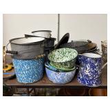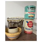 Wooden Bowls, Tin Cans, Enamelware Pots, etc.
