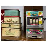 Stacking Bookcase with Advertising Tins, etc.