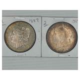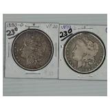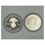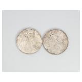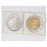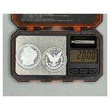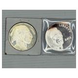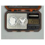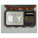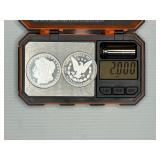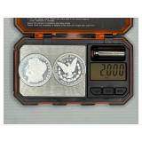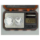 Two Morgan .999 fine silver dollar bullion rounds